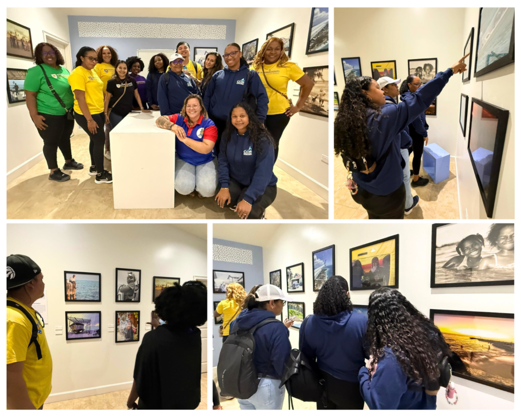 Upon opening, we were delighted to welcome a group of visiting ICCI students for a guided tour of the exhibition. On their trip to the Central Caribbean Marine Institute and Little Cayman National Trust, the group stopped by the historic building to meet NGCI Director Natalie Urquhart and explore the series of dynamic images that showcase Cayman’s contemporary and historic lifestyles.
