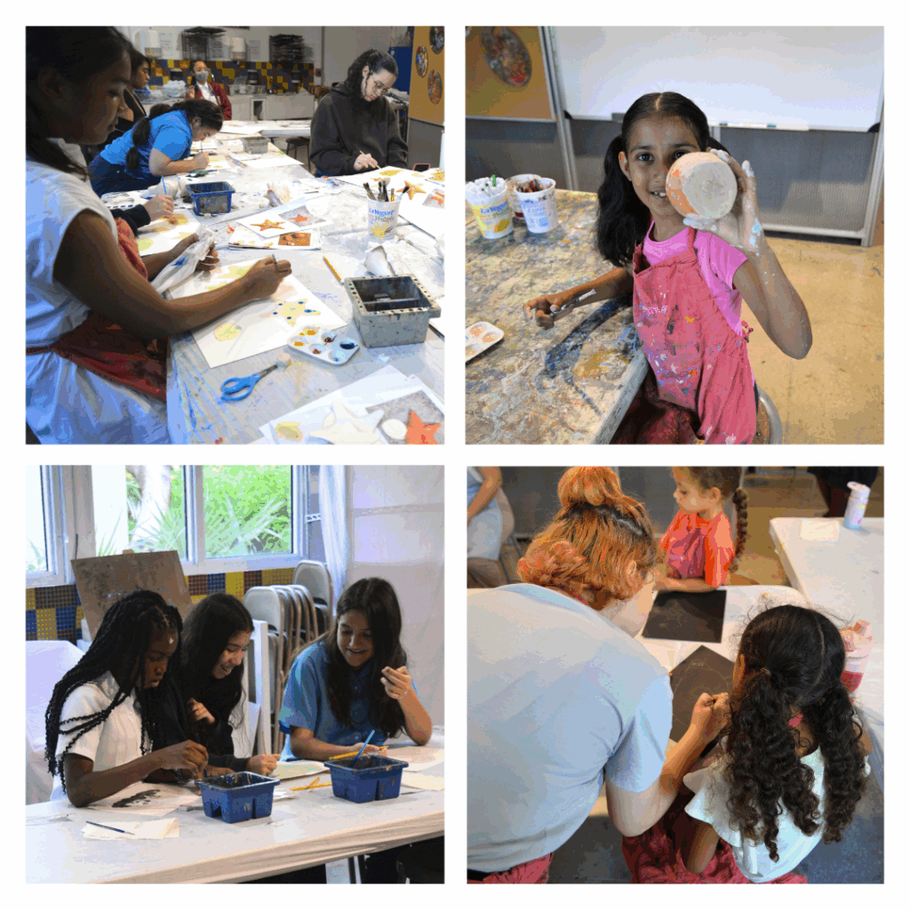 In our Susan A. Olde art studio and the Exhibition Hall, participants learnt numerous traditional art techniques such as still life drawing, acrylic painting, watercolour painting, coil and pinch-pot ceramics, collage, and two-point perspective. They also experimented with new techniques such as coffee painting, newspaper mâché paint, glue paint, rubber stamp making, and fashion textiles. As part of the programme, students toured the National Gallery’s exhibition spaces, and were inspired by local and international artists, inspiring them to develop their artistic eye, and apply it to their own creative styles in class.